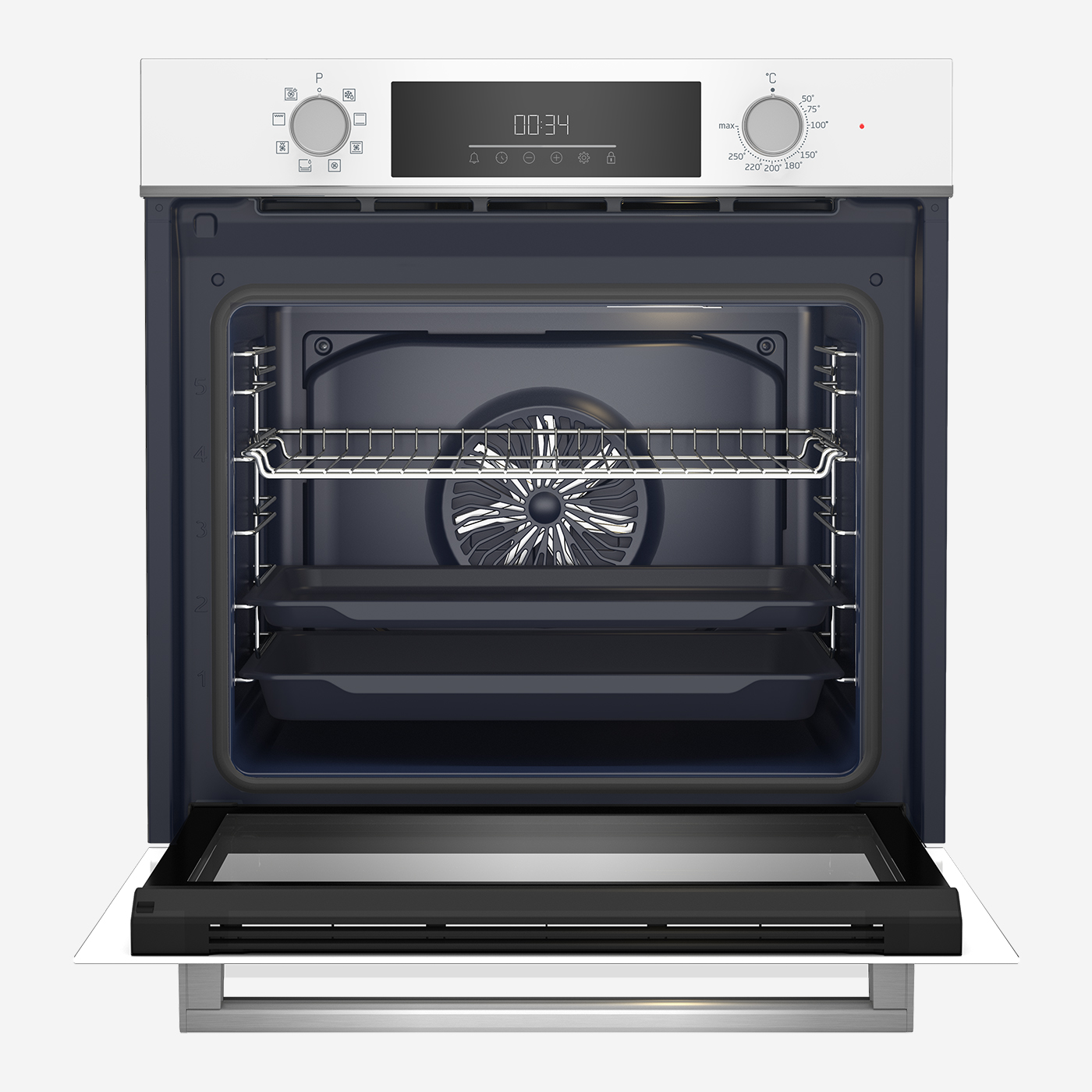 هل ترغبين في متابعة عملية الطهي دون فتح الباب وفقدان الحرارة بالداخل؟ إضاءة الهالوجين تساعدك على رؤية تجويف الفرن بالكامل، مما يتيح لك مراقبة إبداعاتك في الطهي مع إبقاء الباب مغلقًا بإحكام.