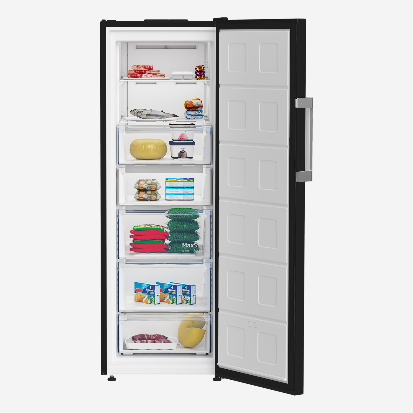 فريزر رأسي سعة ٢٩١ لتر صافي ٢٦٠ لتر بدون تجميد، ٧ أدراج (مصنوع من مادة PVC)، أسود