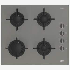 Gas Hob 60 cm 4 Berners, Gas Safety, Cast Iron Pan Support, Manhattan Grey, Glass, Integrated Ignition