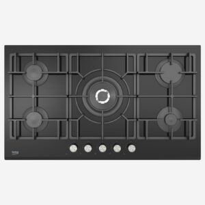 Gas Hob 90 cm 5 Berners, Gas Safety, Cast Iron Pan Support, Black Tempered Glass Surface